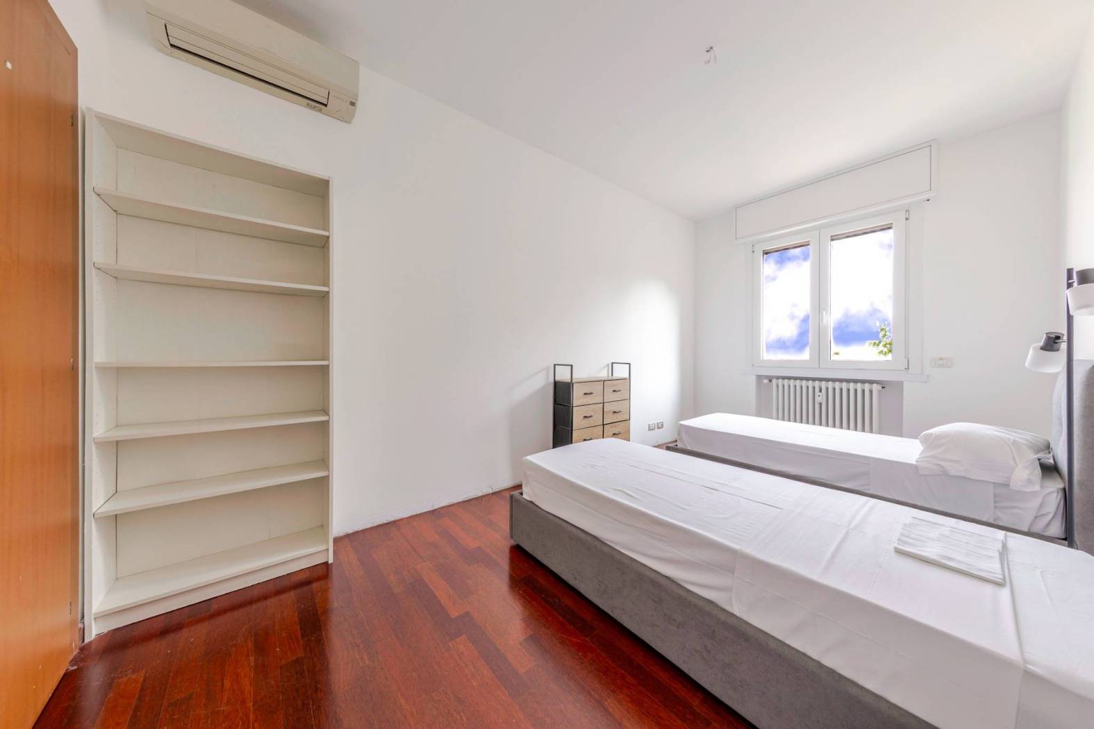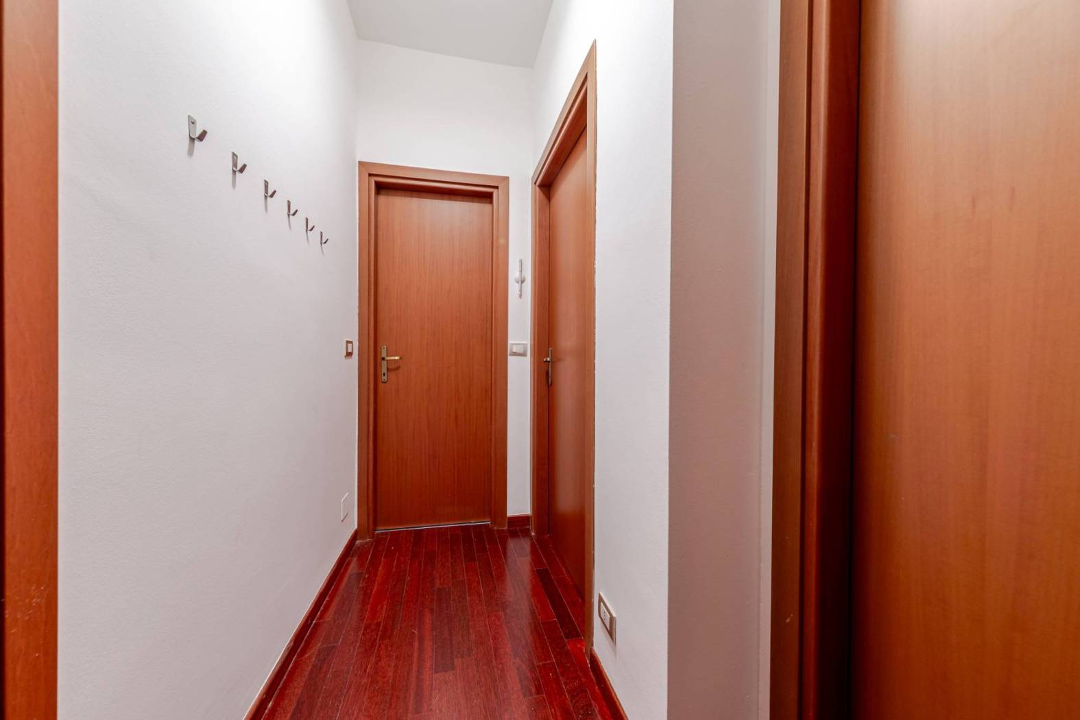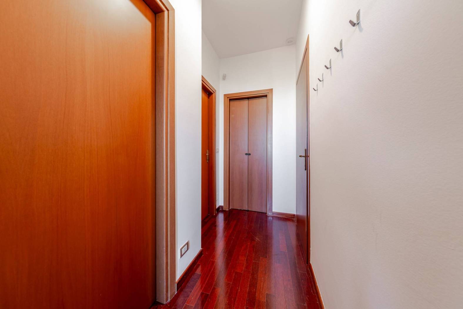 L'immobile è così disposto: si accede ad un ampio ingresso, che introduce da un lato, ad un primo disimpegno che porta alla zona notte composta da due ampie camere da letto matrimoniali, una con bagno en suite con doccia, secondo bagno finestrato con doccia e ampio locale ripostiglio adibito a guardaroba.