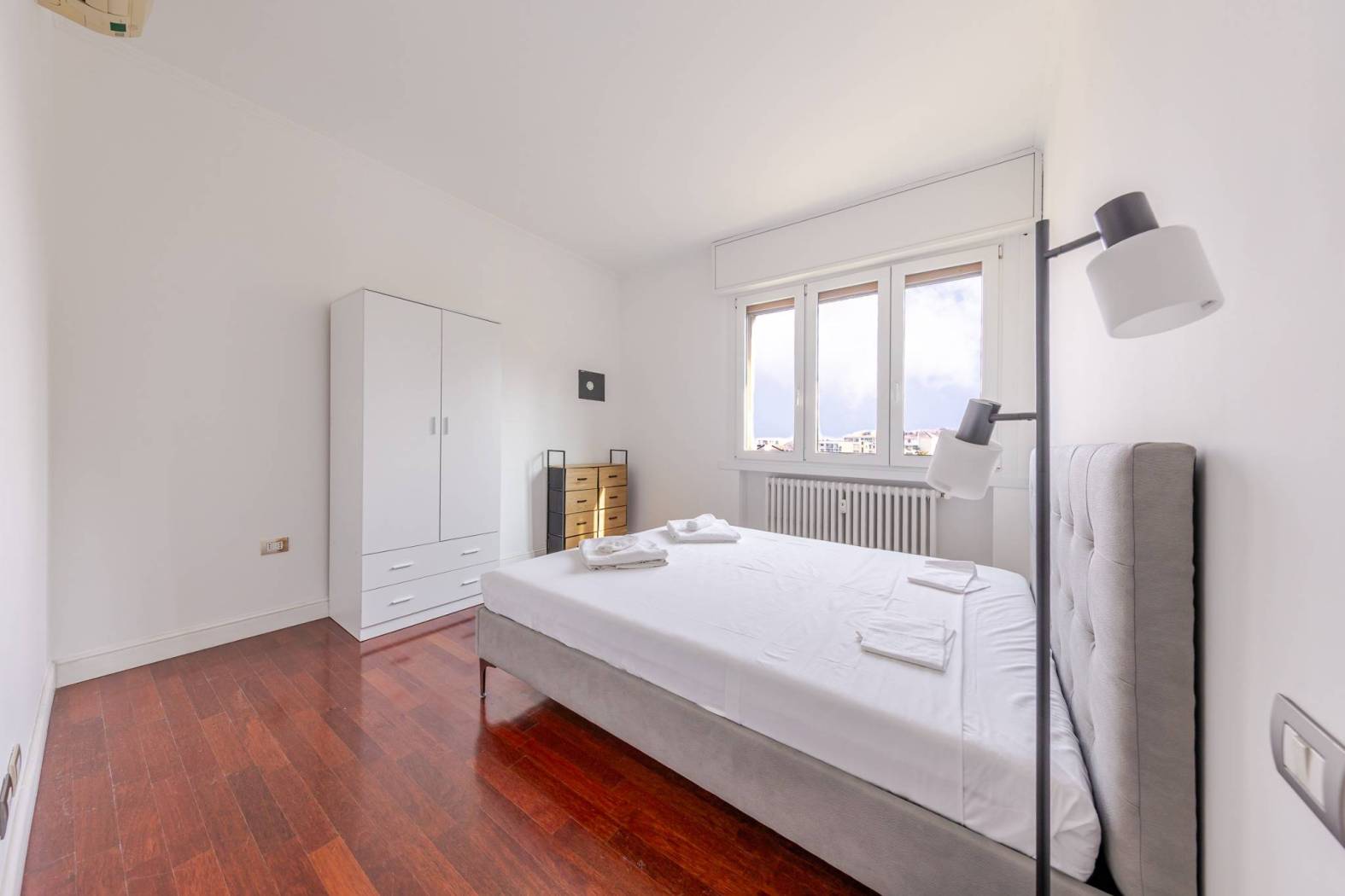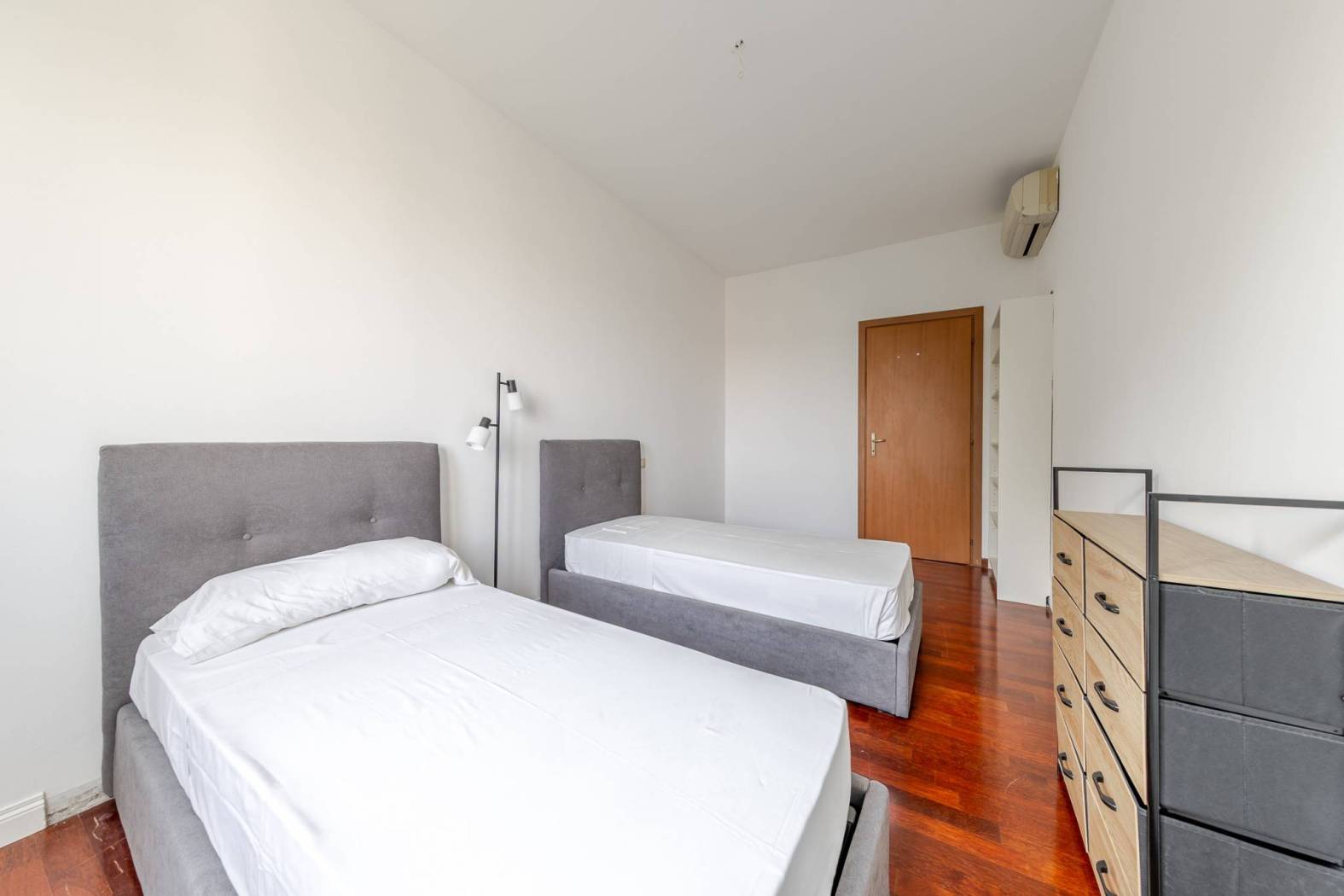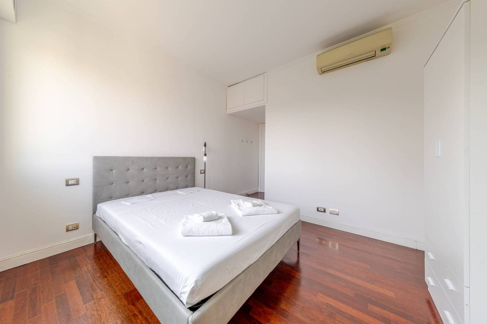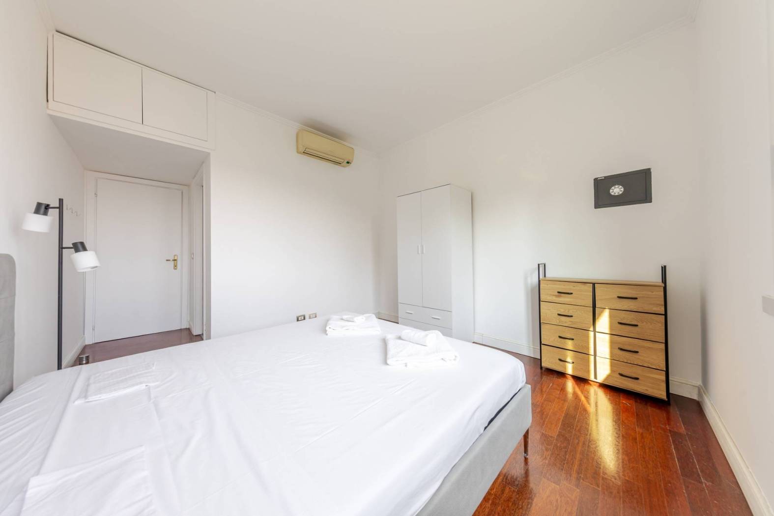 L'immobile è così disposto: si accede ad un ampio ingresso, che introduce da un lato, ad un primo disimpegno che porta alla zona notte composta da due ampie camere da letto matrimoniali, una con bagno en suite con doccia, secondo bagno finestrato con doccia e ampio locale ripostiglio adibito a guardaroba.