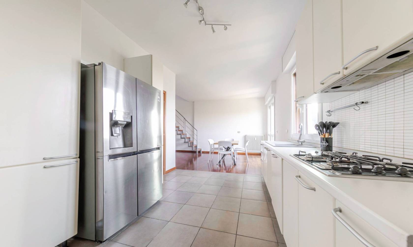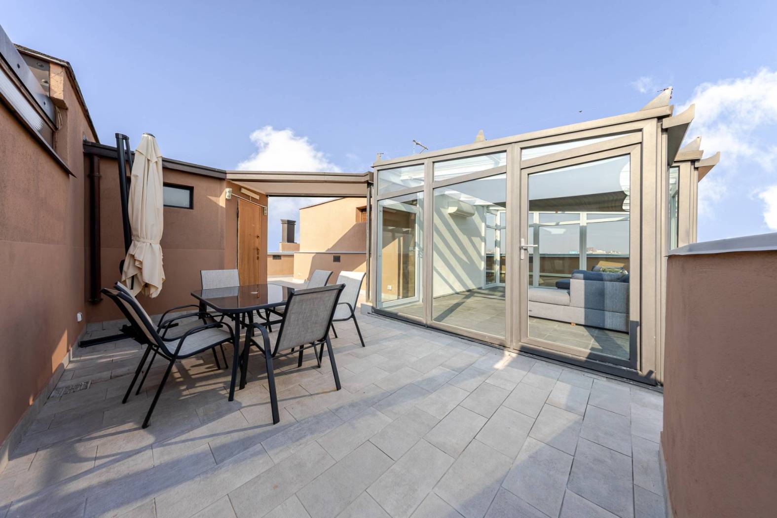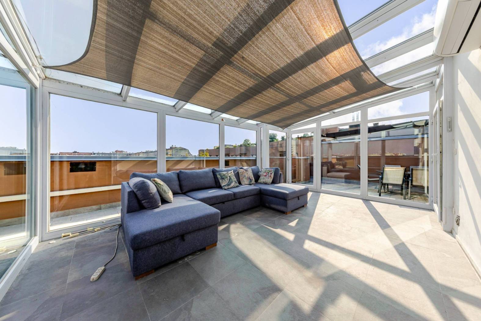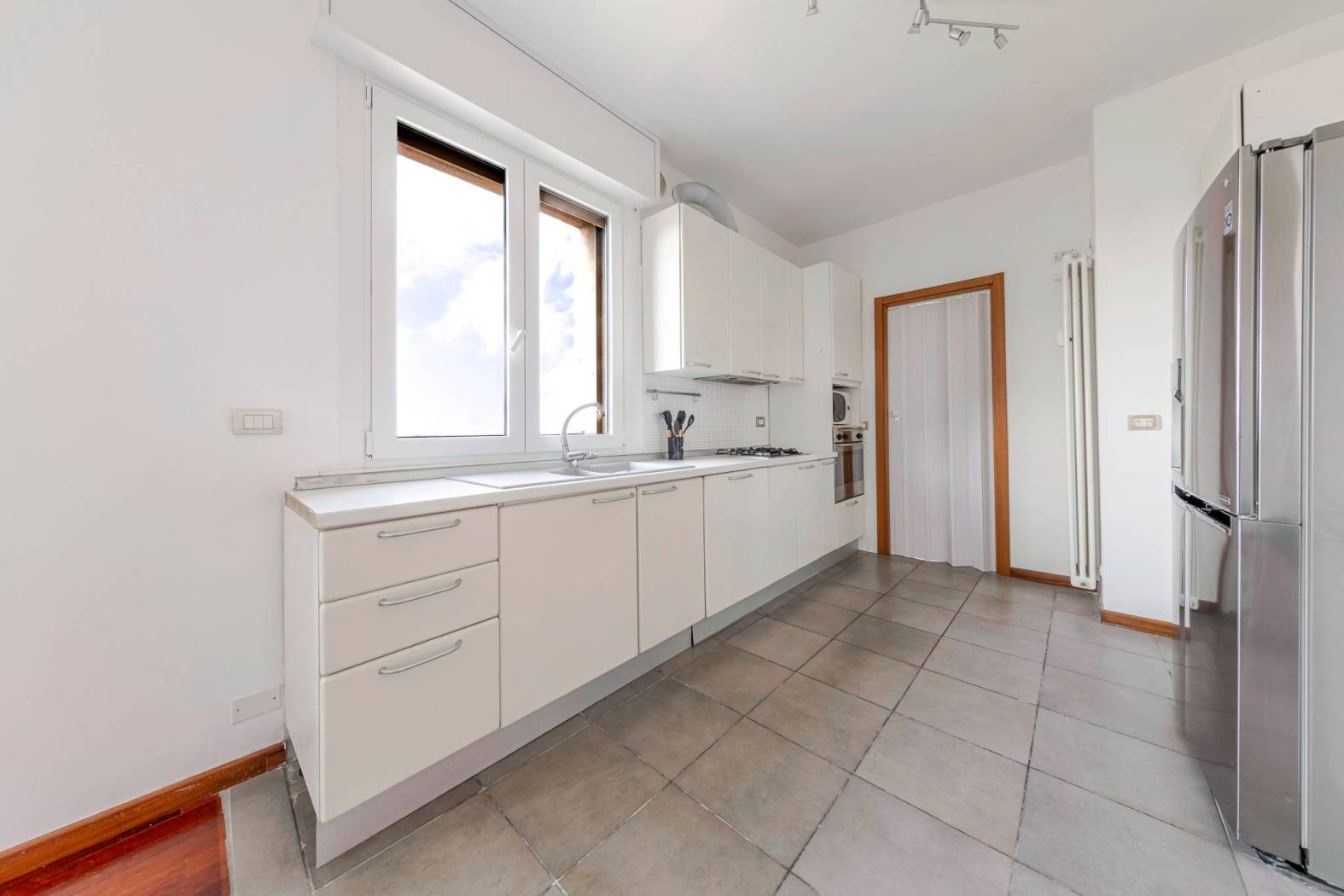L'accesso diretto al terrazzo panoramico tramite una scala interna nel soggiorno rende questo appartamento unico nel suo genere. Gli spazi esterni scoperti e la veranda climatizzata offrono ulteriori opportunità per godere del sole e della vista. Situato in una zona estremamente servita, con facile accesso alle fermate della metropolitana MM linea lilla Cenisio e Gerusalemme, questo appartamento è ideale per chi cerca comfort e praticità.