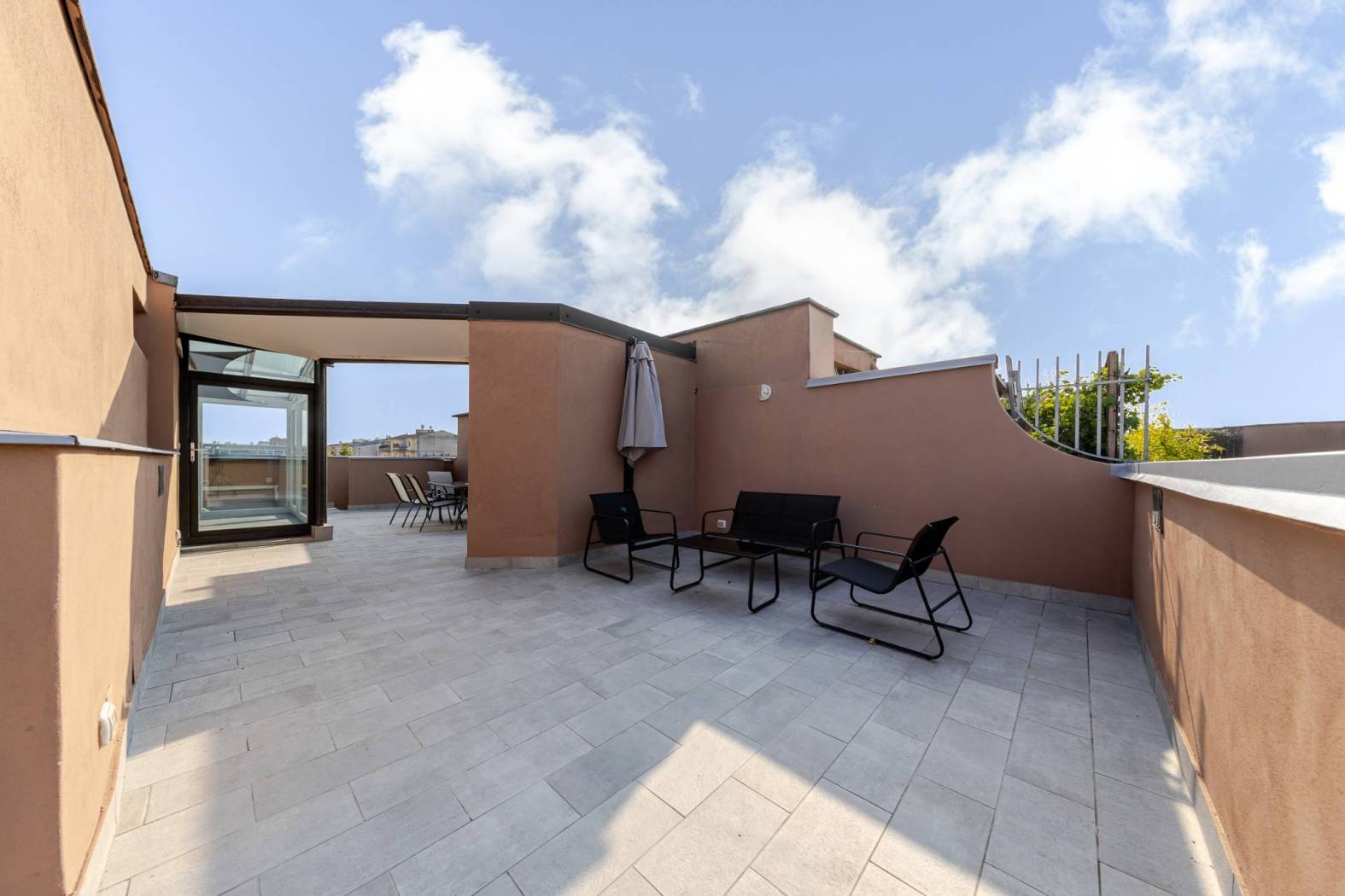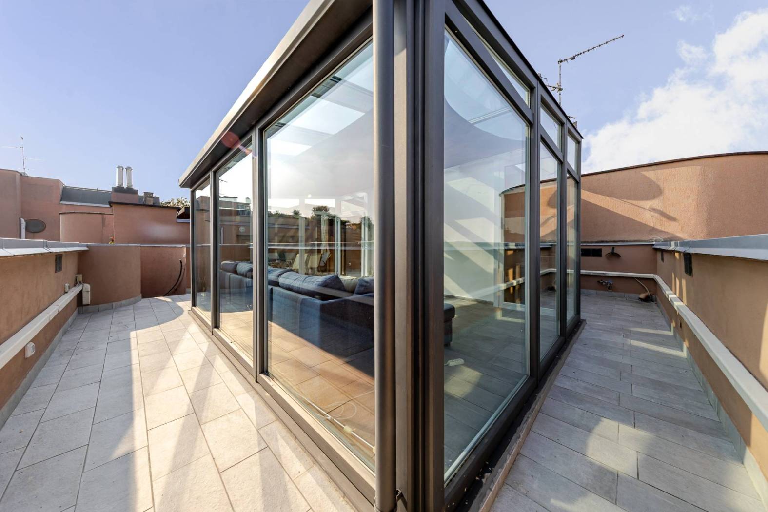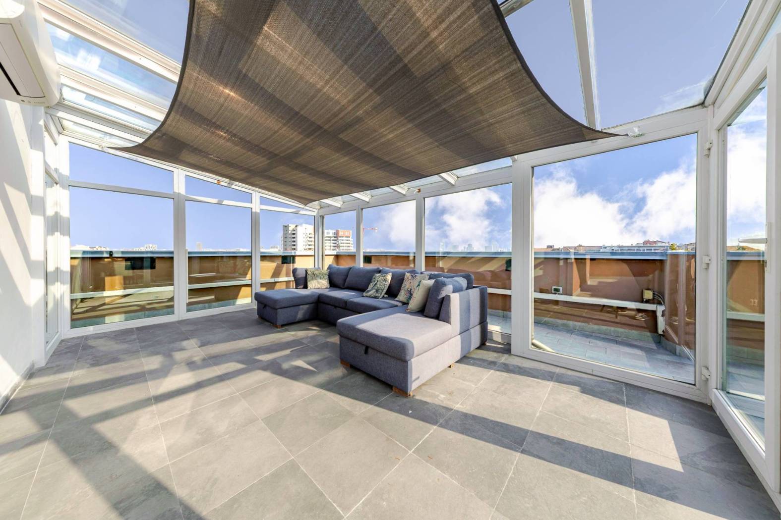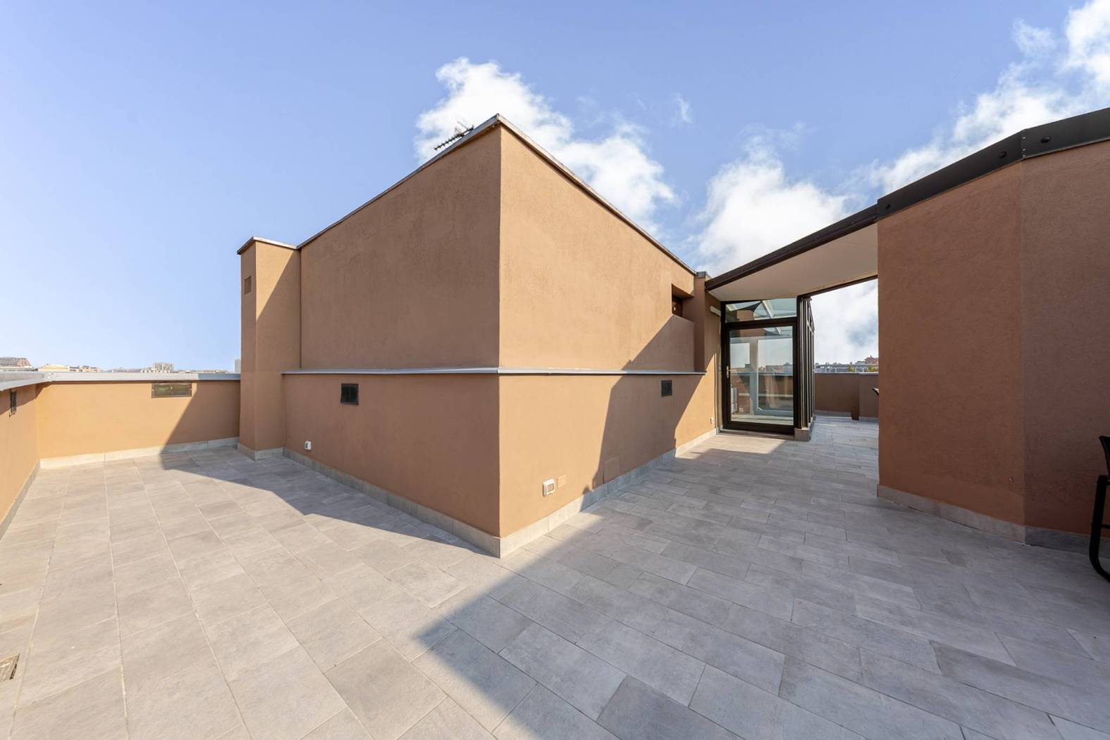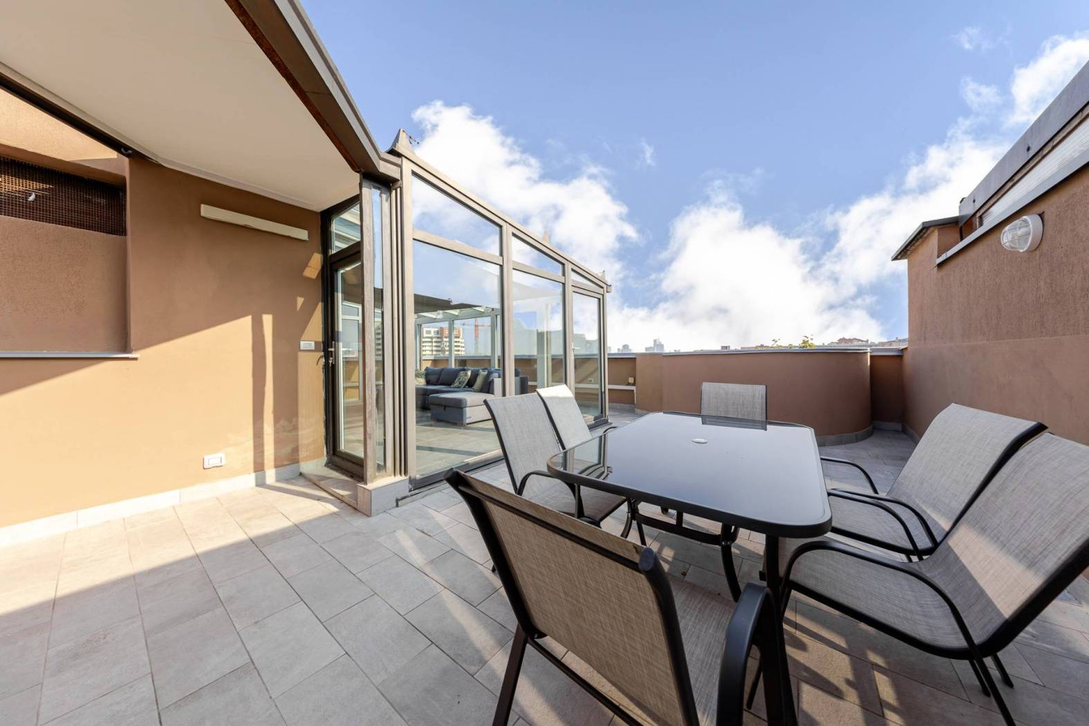 L'accesso diretto al terrazzo panoramico tramite una scala interna nel soggiorno rende questo appartamento unico nel suo genere. Gli spazi esterni scoperti e la veranda climatizzata offrono ulteriori opportunità per godere del sole e della vista. Situato in una zona estremamente servita, con facile accesso alle fermate della metropolitana MM linea lilla Cenisio e Gerusalemme, questo appartamento è ideale per chi cerca comfort e praticità.