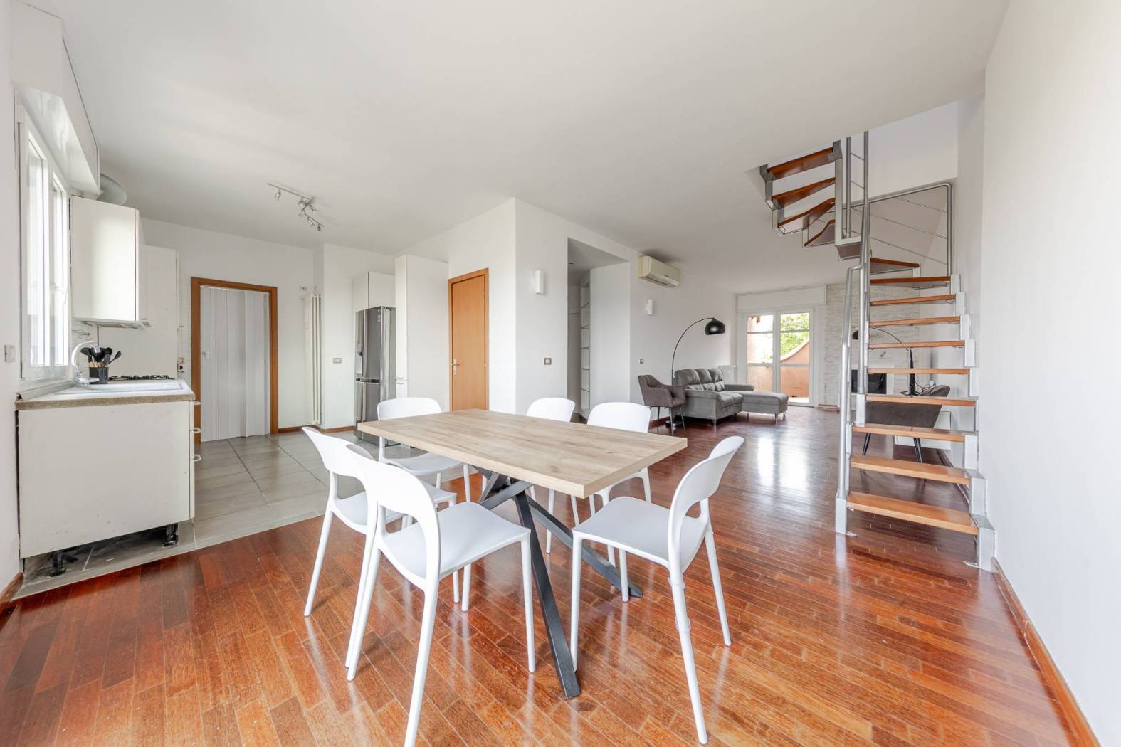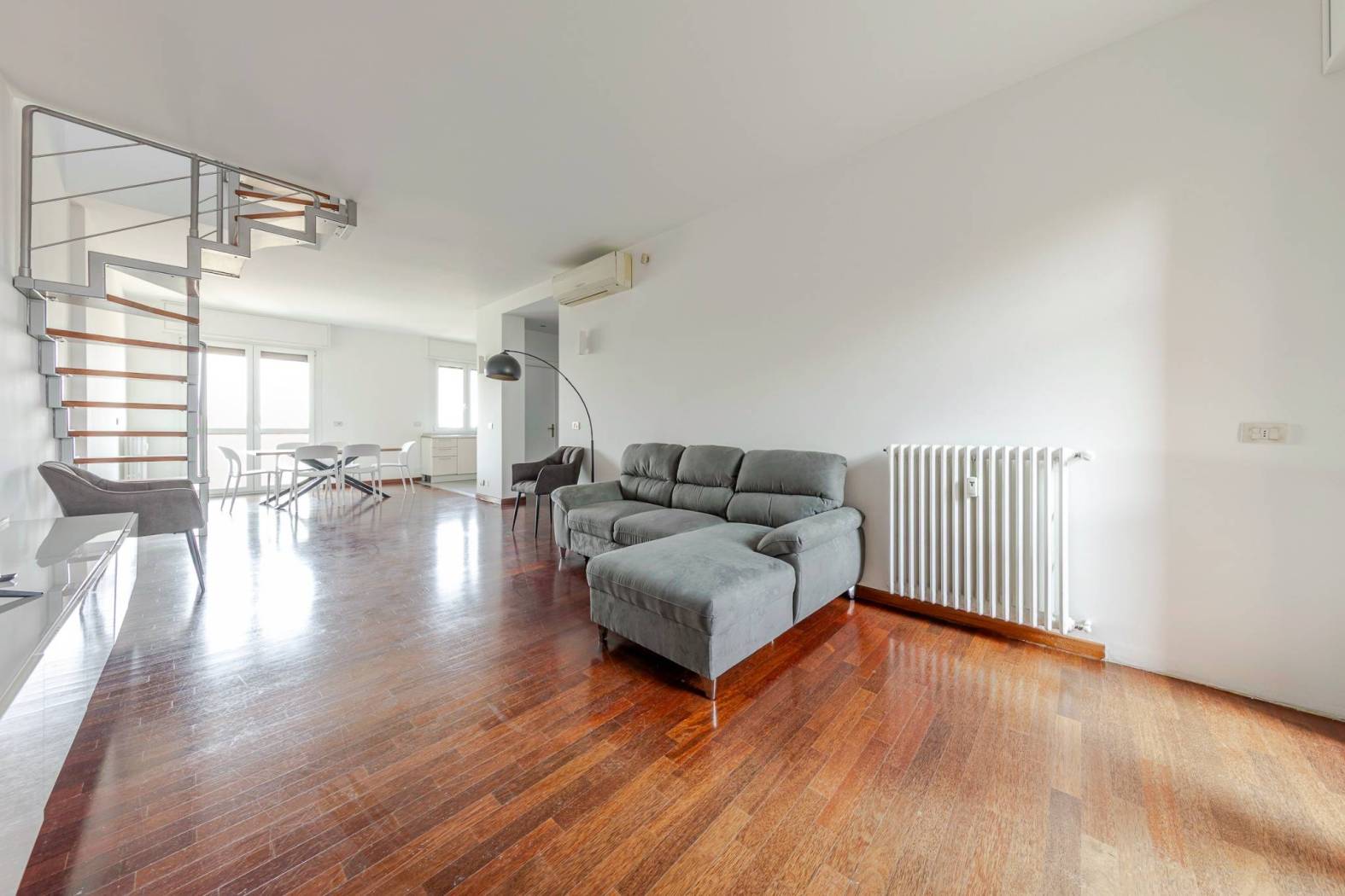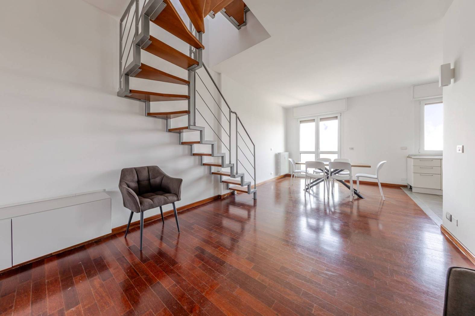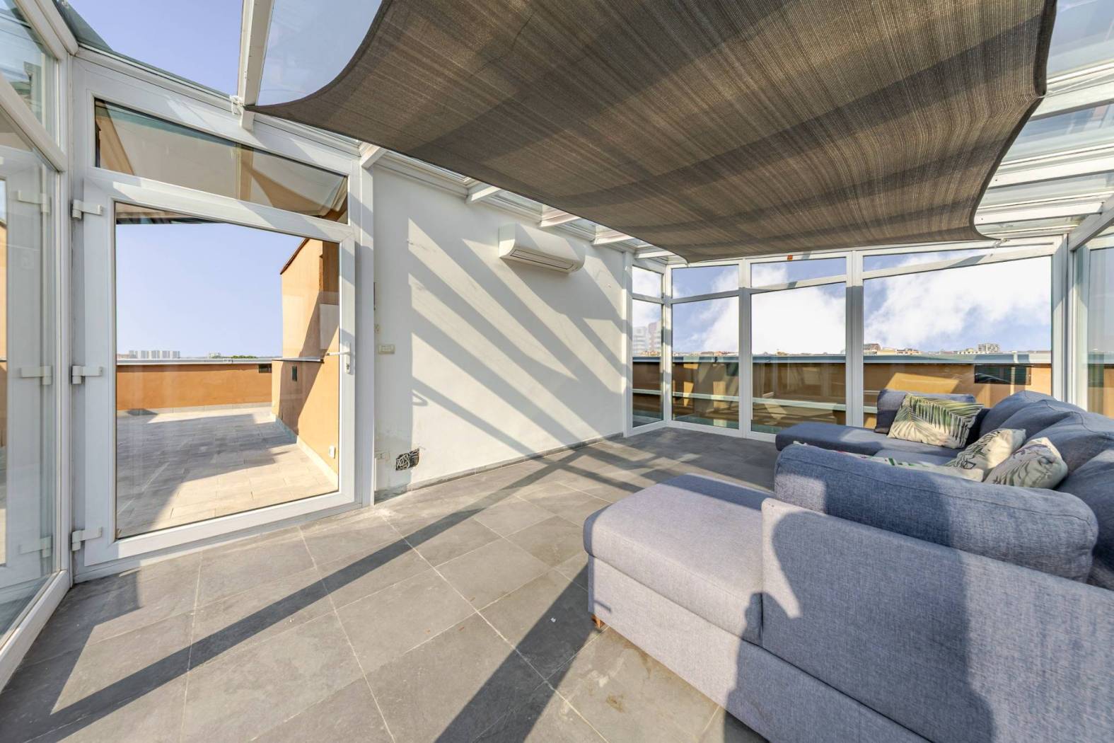 L'accesso diretto al terrazzo panoramico tramite una scala interna nel soggiorno rende questo appartamento unico nel suo genere. Gli spazi esterni scoperti e la veranda climatizzata offrono ulteriori opportunità per godere del sole e della vista. Situato in una zona estremamente servita, con facile accesso alle fermate della metropolitana MM linea lilla Cenisio e Gerusalemme, questo appartamento è ideale per chi cerca comfort e praticità.